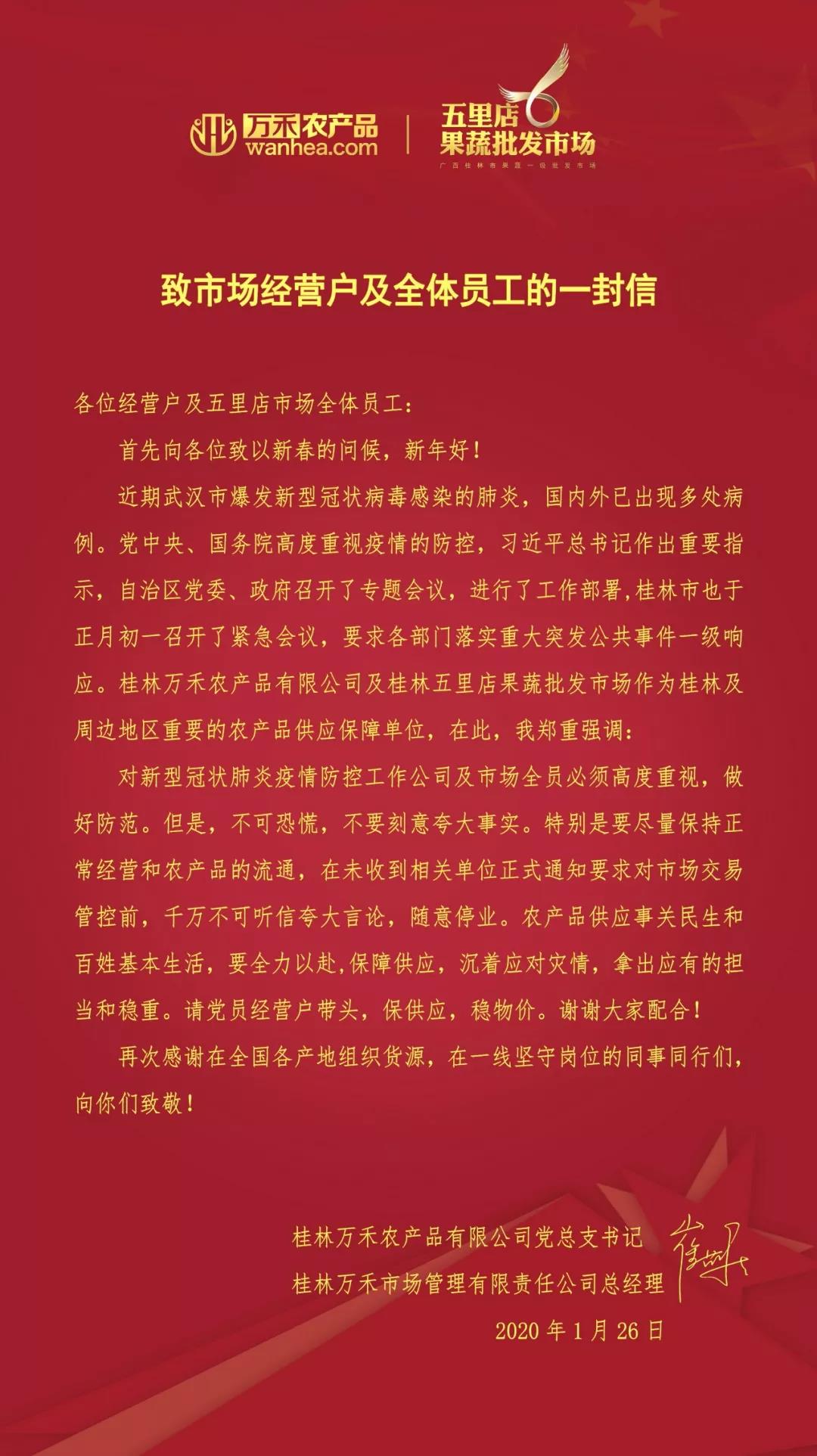 桂林萬禾農(nóng)產(chǎn)品有限公司是桂北地區(qū)重要的農(nóng)產(chǎn)品供應(yīng)保障單位,旗下五里店果蔬批發(fā)市場做為湘桂黔三省交界最大的農(nóng)產(chǎn)品交易平臺,在新型冠狀病毒感染的肺炎疫情發(fā)生以來,勇于擔(dān)當(dāng)重任,堅守物資保障供應(yīng)的陣地。為確保桂林及周邊地區(qū)蔬菜水果供應(yīng),萬禾公司員工全面投入到抗疫情、保供應(yīng)、穩(wěn)物價工作中,以確保打贏這場疫情防控保供應(yīng)的攻堅戰(zhàn)。