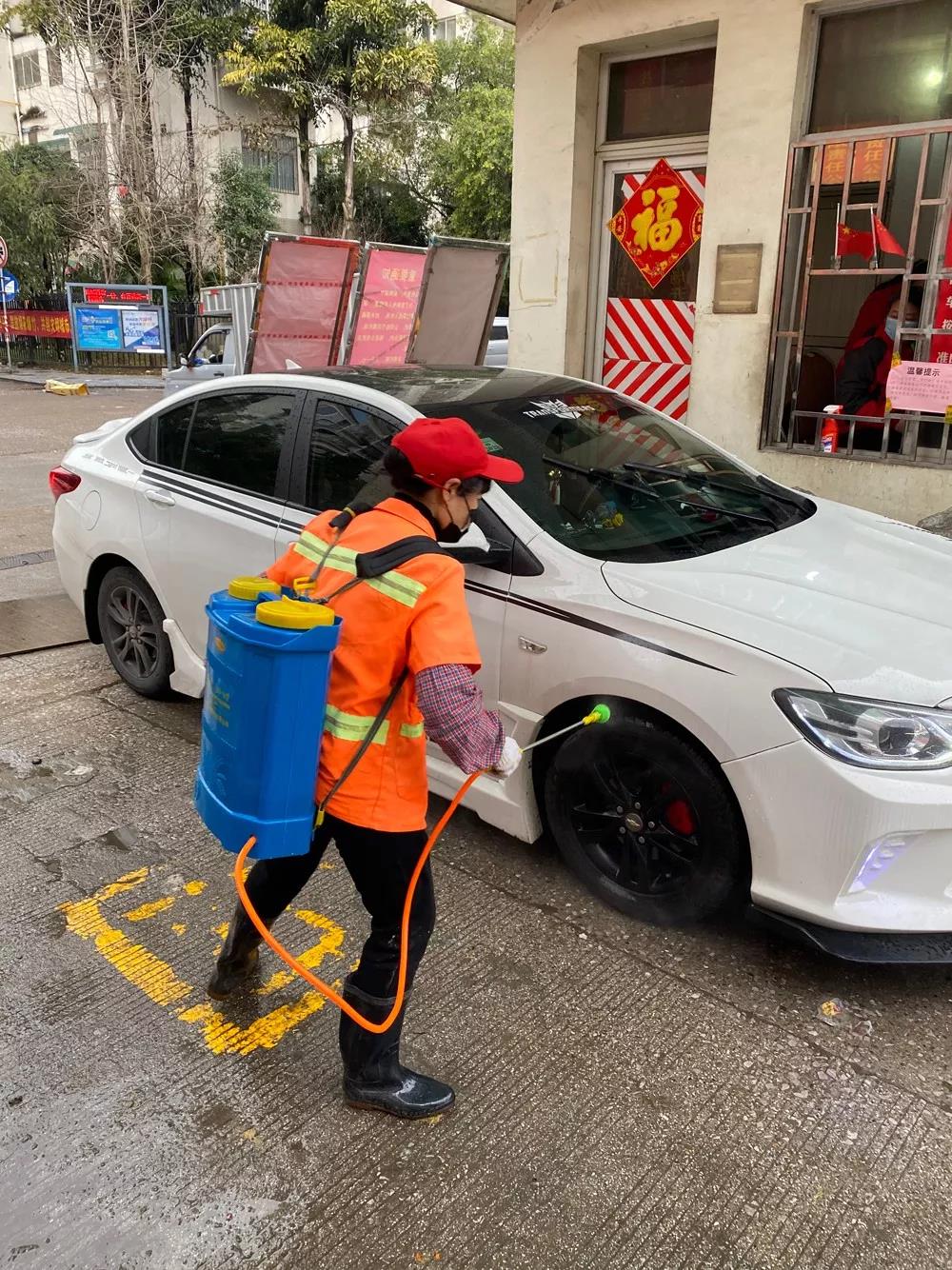 ▲五里店果蔬批發(fā)市場對進(jìn)出車輛進(jìn)行消毒