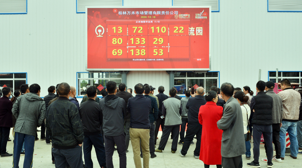 10月18日,在寧鐵桂林東—萬禾冷鏈物流園市場廣場,回饋抽獎(jiǎng)活動(dòng)圓滿舉行。憑票據(jù)換取抽獎(jiǎng)券歷時(shí)近半個(gè)月時(shí)間,市場共計(jì)300百余戶采購商與商戶參與,豐厚的獎(jiǎng)金激發(fā)了大家的熱情。