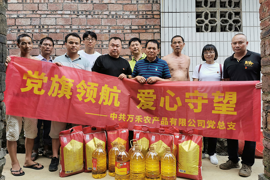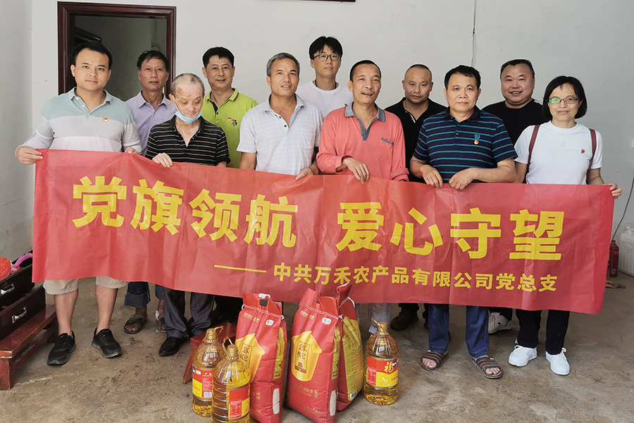 6月26日,中共桂林萬禾農產品有限公司總支部委員會組織黨員同志們,開展了“黨旗領航·愛心守望”慰問活動。驅車前往桂林市臨桂區(qū)五通鎮(zhèn)羅江村,為受災較重的羅江村委會4個自然村部分受災群眾送去了米面、糧油等物資,以實際行動助力鼓勵受災群眾戰(zhàn)勝當前困難,早日度過難關。