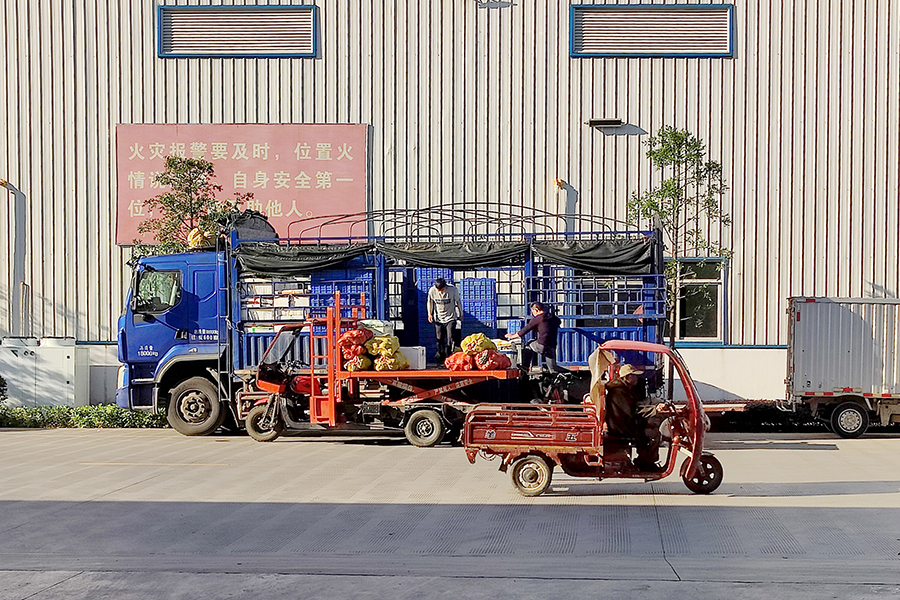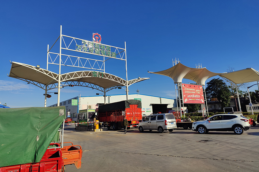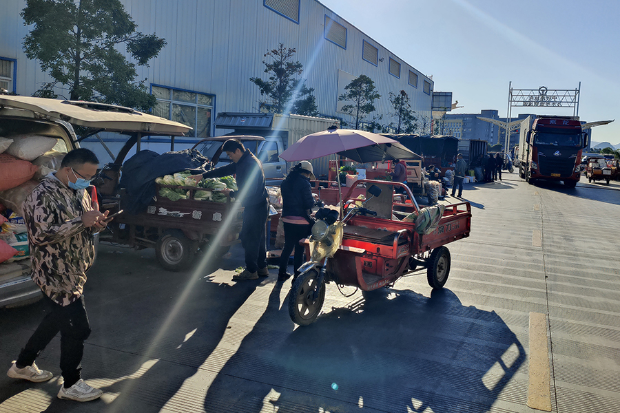 ▲車輛和人員有序進入五里店果蔬批發(fā)市場