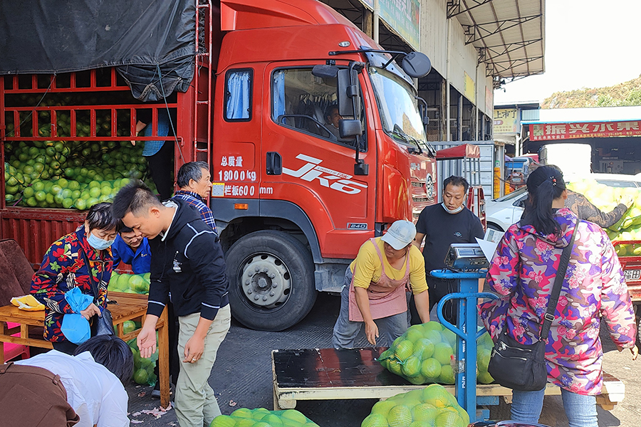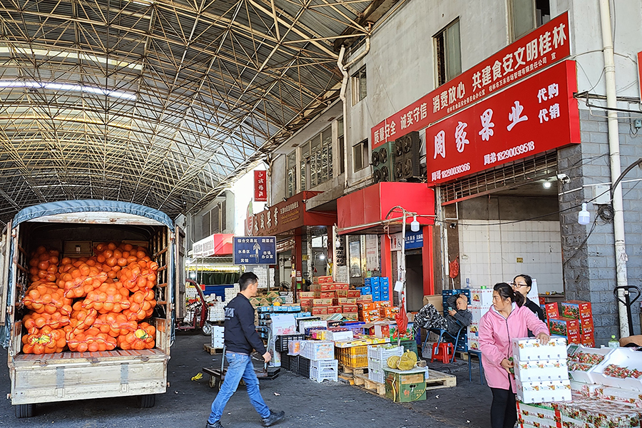 10月11日,五里店果蔬批發(fā)市場和寧鐵桂林東萬禾冷鏈物流園內(nèi)各類農(nóng)產(chǎn)品交易秩序井然,來自各地載滿果蔬的運輸車輛有序進入市場,各類農(nóng)產(chǎn)品貨源供應(yīng)充足,品種豐富,市場交易一片繁忙。