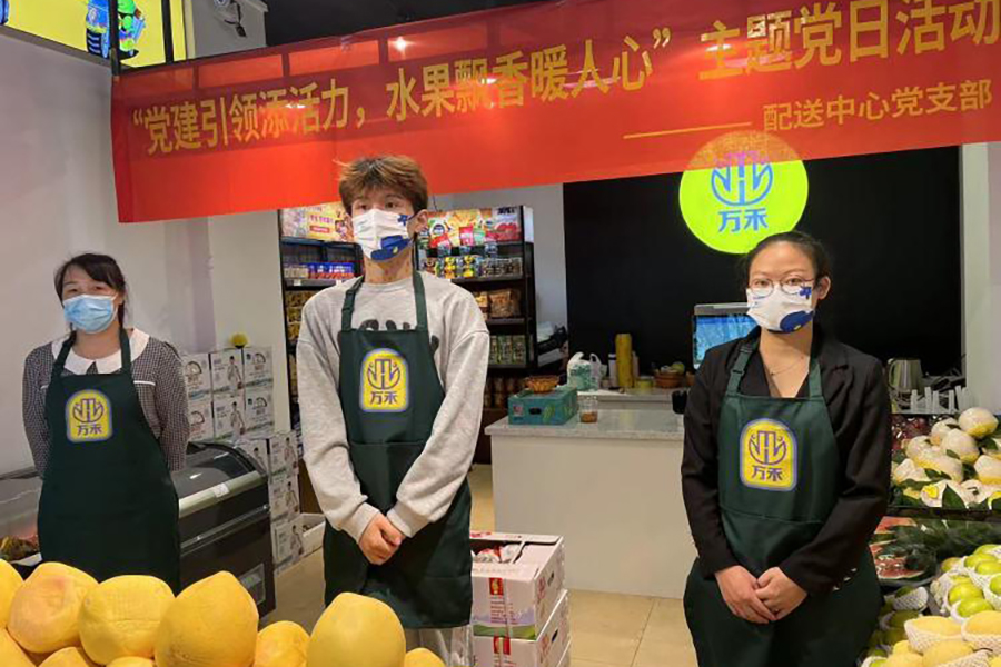 在萬禾集團(tuán)黨總支的引領(lǐng)和指導(dǎo)下,萬禾貿(mào)易公司通過市場調(diào)查、踩點等各項前期工作,確定奧林匹克花園和金水灣萬禾水果專營店投入正式運營,并且秉承業(yè)務(wù)發(fā)展到哪里,黨旗就插到哪里的理念,發(fā)揚黨支部的戰(zhàn)斗堡壘作用和黨員先鋒模范作用,圍繞中心抓黨建,抓好黨建促業(yè)務(wù),堅持黨建工作和業(yè)務(wù)工作目標(biāo)同向、部署同步,工作同力,使二者在融合發(fā)展中相互促進(jìn),切實推動企業(yè)的高質(zhì)量發(fā)展。