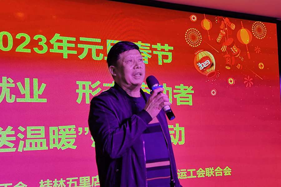 桂林市七星區(qū)總工會(huì)常務(wù)副主席陳國(guó)峰為貨運(yùn)司機(jī)帶來(lái)了暖心的春節(jié)禮盒、米等慰問(wèn)品,同時(shí),作了題為《深入學(xué)習(xí)貫徹黨的二十大精神,努力在新的偉大征程上開(kāi)創(chuàng)新就業(yè)形態(tài)勞動(dòng)者工會(huì)工作新局面——在貨車司機(jī)培訓(xùn)班上的輔導(dǎo)報(bào)告》的宣講。