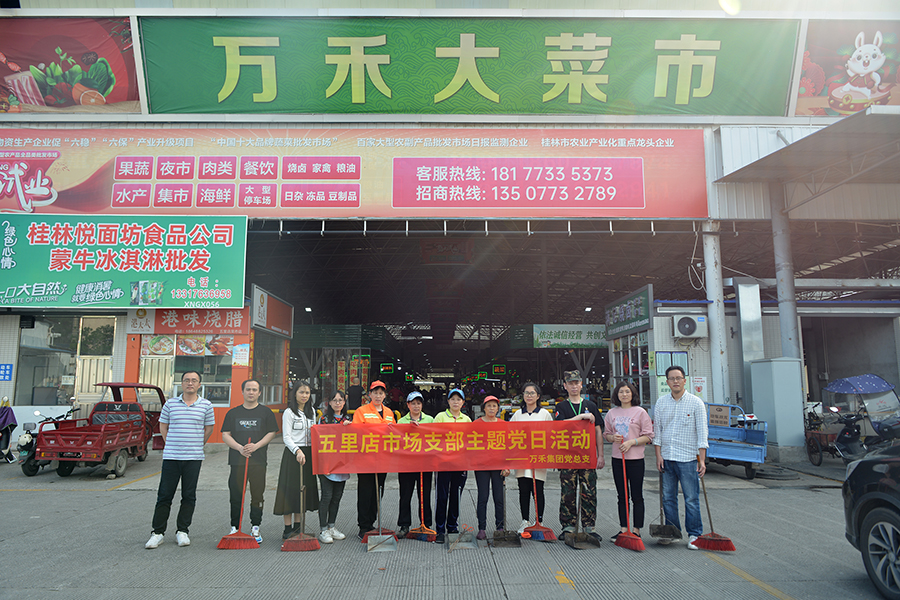 為給市場(chǎng)經(jīng)營(yíng)戶(hù)營(yíng)造干凈、整潔的經(jīng)營(yíng)環(huán)境,讓廣大市民過(guò)上歡樂(lè)、祥和的廣西特色民族節(jié)日,在三月三即將到來(lái)之際,萬(wàn)禾集團(tuán)五里店市場(chǎng)支部組織黨員在五里店果蔬批發(fā)市場(chǎng)開(kāi)展“美化環(huán)境,喜迎三月三”主題黨日活動(dòng),進(jìn)一步弘揚(yáng)新時(shí)代文明新風(fēng)和環(huán)保意識(shí)。