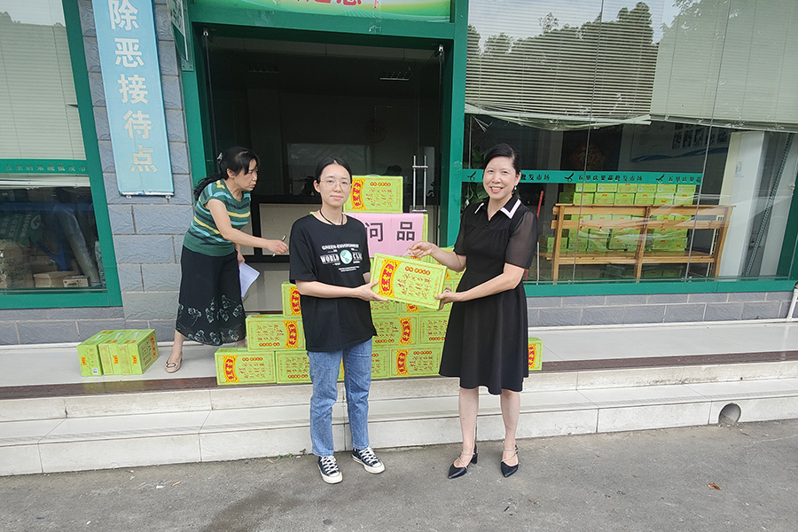 ▲夏四初為堅(jiān)守一線的員工贈(zèng)送防暑飲品