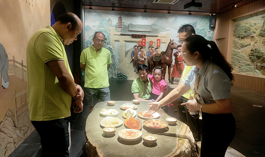 在桂花公社景區(qū),萬禾集團(tuán)黨總支副書記夏四初一行在講解員的帶領(lǐng)下,先后參觀了桂花公社黨史主題館和桂花文化體驗(yàn)館,大家通過講解員聲情并茂的解說和沉浸式5D短片演示,詳細(xì)了解了中國共產(chǎn)黨百年歷史,回顧了中國共產(chǎn)黨不屈不撓、英勇奮斗的發(fā)展歷程,深切感受中國共產(chǎn)黨百年光輝歷史和取得的偉大成就。身臨其境地了解了桂林桂花的起源和歷史典故,感受桂林桂花的深厚文化底蘊(yùn)。