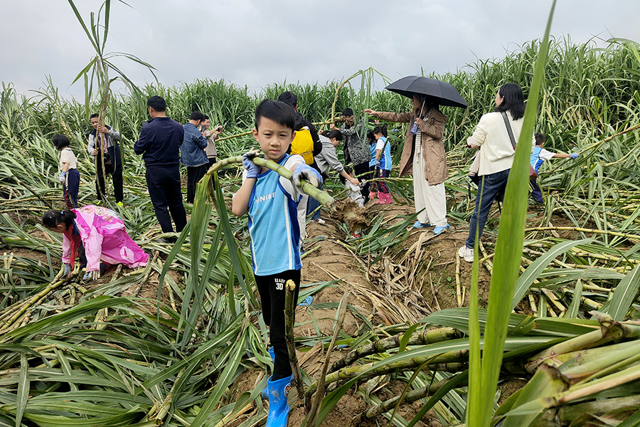 探索自然魅力,體驗(yàn)秋收農(nóng)趣。活動(dòng)現(xiàn)場(chǎng),五通基地種植技術(shù)員首先向師生們介紹了青皮甘蔗的歷史典故以及紅薯、玉米等農(nóng)作物的種植要領(lǐng)和相關(guān)知識(shí)。隨后,師生們走進(jìn)五通基地田間地頭,依次參觀了紅薯地、玉米地、青皮甘蔗地,學(xué)習(xí)了解各類農(nóng)作物的生長特征,并在五通基地工作人員的演示指導(dǎo)下,親身體驗(yàn)挖紅薯、摘玉米、砍甘蔗、榨甘蔗汁等勞作過程,雖然天下著雨,但絲毫不影響師生們參與勞動(dòng)體驗(yàn)的心情。隨著工作人員將收獲的紅薯和玉米蒸煮成一鍋熱氣騰騰的美食端上餐桌,搭配上一杯杯現(xiàn)榨鮮甜甘蔗汁,師生們現(xiàn)場(chǎng)品嘗到自己親手采摘的勞動(dòng)果實(shí),他們紛紛點(diǎn)贊道:“真是太好吃了,感覺就是人間美味”。通過參加本次活動(dòng)讓學(xué)生們進(jìn)一步感受到秋實(shí)不負(fù)春華,收獲不負(fù)耕耘的深刻含義。