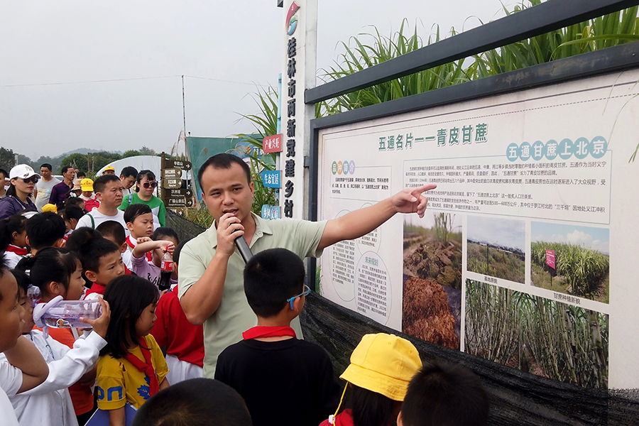 多彩深秋時節(jié),在充滿豐收氣息的桂林市兩新黨建鄉(xiāng)村振興五通示范基地,迎來了一群朝氣蓬勃的“勞動小達人”。11月4日,來自桂林市復興小學227班的近100位師生家長走進五通基地開展“勞動勵心智,實踐促成長”主題社會研學活動,全面了解五通基地的種植規(guī)劃建設、多元發(fā)展模式、主營業(yè)務成果、種植農作物生長習性以及青皮甘蔗的歷史文化內涵,更加真切、生動地感受國家推進鄉(xiāng)村振興發(fā)展的強勁脈動和蓬勃活力。