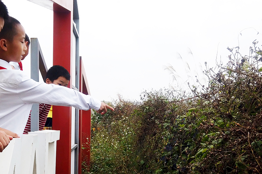 ▲復興小學227班師生家長走進五通基地學習相關農作物知識