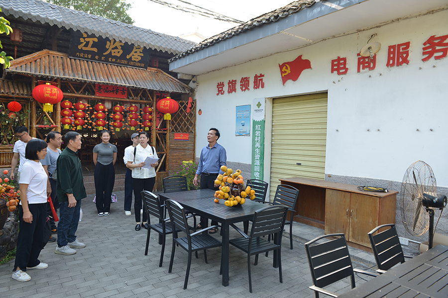 首先,全體黨員來到紅巖村“黨旗領(lǐng)航 電商服務”民宿點,認真聆聽了恭城紅巖村旅游協(xié)會會長、全國勞模、自治區(qū)第十一次黨代會代表朱建倫對紅巖村歷史文化和月柿特色農(nóng)產(chǎn)品發(fā)展模式進行講解,并與大家交流分享如何發(fā)展生態(tài)農(nóng)業(yè)旅游和鄉(xiāng)村振興示范村的建設情況及經(jīng)驗做法。