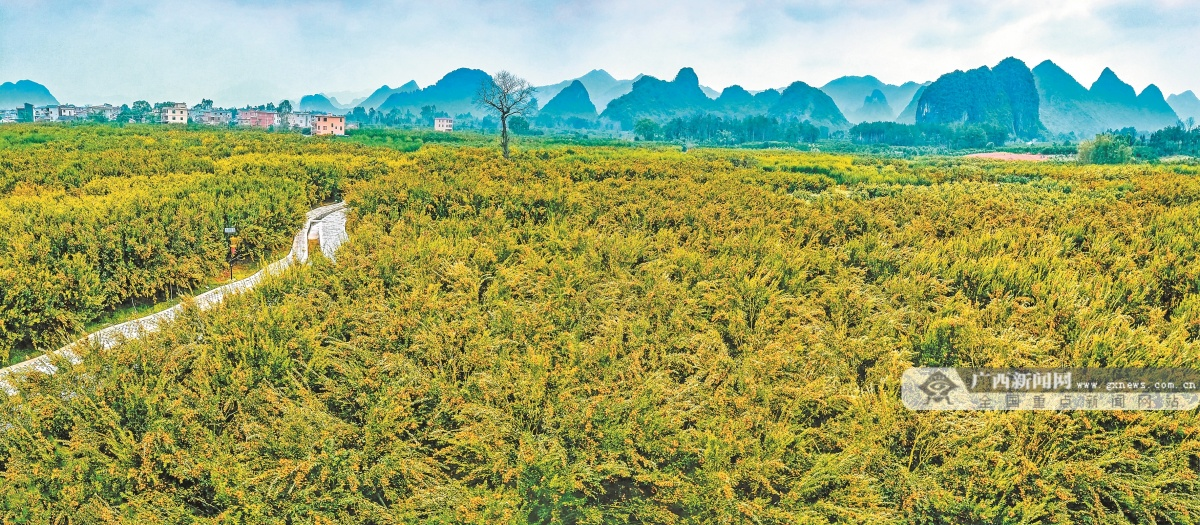 廣西水果產量已連續(xù)5年排名全國第一,是中國亞熱帶水果的“果園子”,也是砂糖橘的重要產區(qū)之一。圖為靈川縣九屋鎮(zhèn)的一處砂糖橘種植基地,成熟的砂糖橘掛滿枝頭,豐收在望。王素華 攝