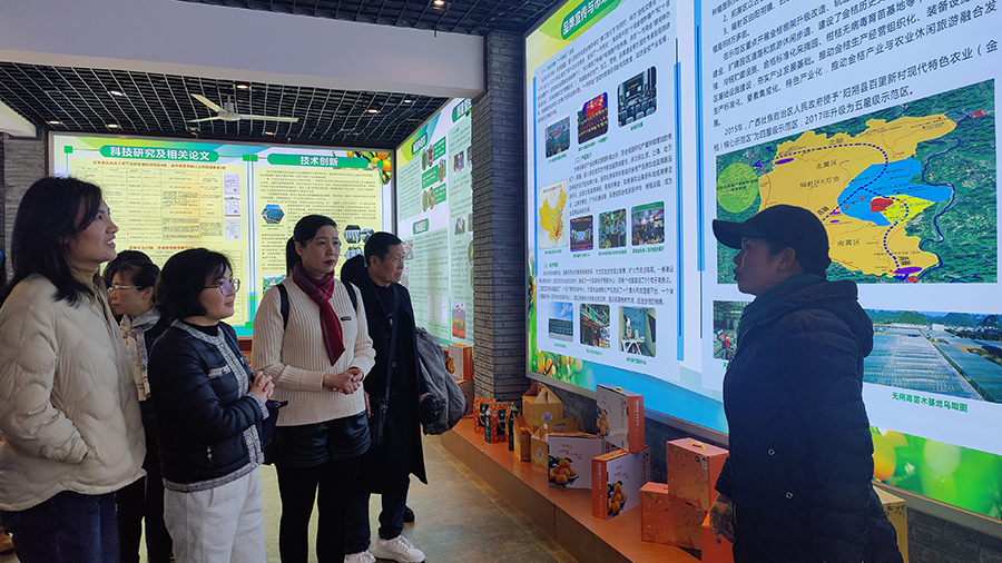 黨員干部們認(rèn)真聆聽賴玉梅介紹金桔特色產(chǎn)業(yè)