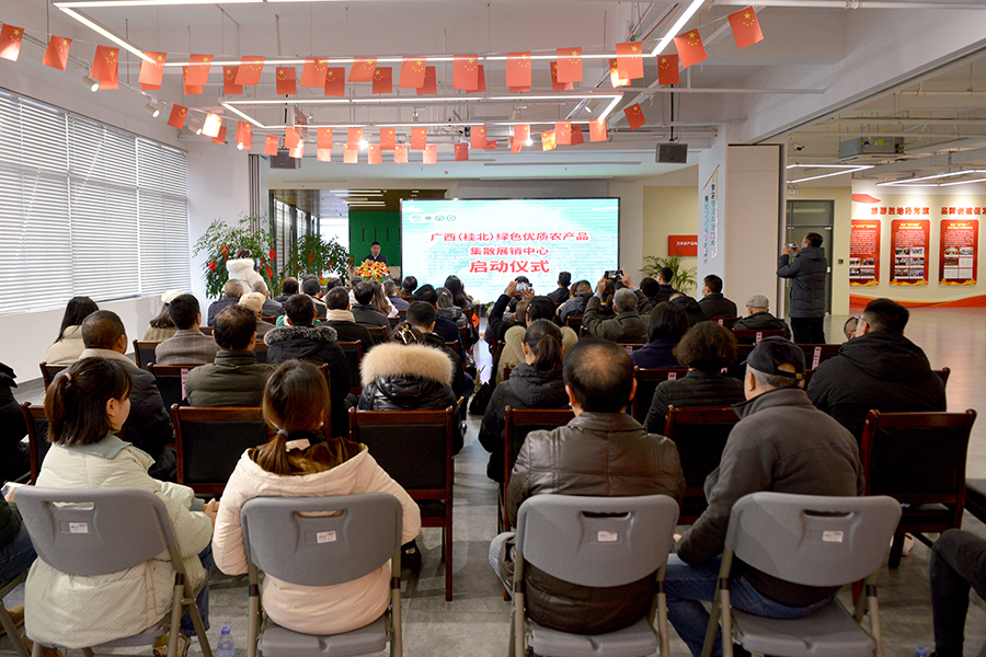 2月2日下午,廣西(桂北)綠色優(yōu)質(zhì)農(nóng)產(chǎn)品集散展銷中心啟動儀式在萬禾集團(tuán)黨建活動基地舉行。自治區(qū)農(nóng)業(yè)農(nóng)村廳農(nóng)產(chǎn)品質(zhì)量安全監(jiān)管處副處長葛維、自治區(qū)綠色食品發(fā)展站站長莫建軍、桂林市農(nóng)業(yè)農(nóng)村局副局長叢莉、七星區(qū)人民政府副區(qū)長熊波浪、桂林市發(fā)展改革委員會四級調(diào)研員蔣汶材、桂林市市場監(jiān)督管理局黨組成員、總工程師鞠偉、桂林市商務(wù)局黨組成員周忠明,及桂林市各縣(市、區(qū))農(nóng)業(yè)農(nóng)村局分管負(fù)責(zé)同志,廣西萬禾農(nóng)業(yè)開發(fā)集團(tuán)有限公司、桂林市食品流通協(xié)會、品創(chuàng)科技有限公司、入駐企業(yè)、供應(yīng)鏈合作企業(yè)等企業(yè)代表60余人出席啟動儀式。