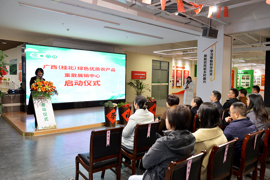 儀式現(xiàn)場,萬禾集團(tuán)黨總支書記、總經(jīng)理崔萌佳首先介紹了廣西(桂北)綠色優(yōu)質(zhì)農(nóng)產(chǎn)品集散展銷中心概況,桂林市農(nóng)業(yè)農(nóng)村局副局長叢莉就桂林市農(nóng)業(yè)產(chǎn)業(yè)發(fā)展相關(guān)情況進(jìn)行發(fā)言,自治區(qū)綠色食品發(fā)展站站長莫建軍就廣西綠色優(yōu)質(zhì)農(nóng)產(chǎn)品發(fā)展相關(guān)情況發(fā)表講話,自治區(qū)農(nóng)業(yè)農(nóng)村廳農(nóng)產(chǎn)品質(zhì)量安全監(jiān)管處副處長葛維宣布廣西(桂北)綠色優(yōu)質(zhì)農(nóng)產(chǎn)品集散展銷啟動中心啟動。