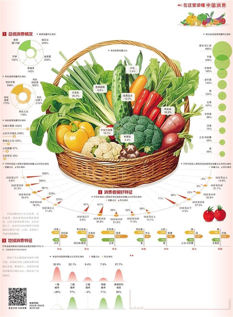 隨著天氣轉暖,各種時令鮮蔬適時走上消費者的餐桌。包括時令春菜、有機蔬菜、原產地蔬菜等在內的各類型產品深受消費者青睞,蔬菜嘗鮮成為消費熱點。