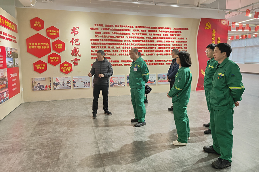 劉小榮書記一行首先來到萬禾集團(tuán)黨建活動基地參觀學(xué)習(xí),詳細(xì)了解萬禾集團(tuán)的基本情況及通過黨建引領(lǐng)萬禾集團(tuán)高質(zhì)量發(fā)展的歷程。在交流學(xué)習(xí)中,大家暢所欲言,就如何推動企業(yè)黨組織建設(shè)和發(fā)揮黨員先鋒模范作用交流經(jīng)驗(yàn)做法,共為企業(yè)黨建發(fā)展出謀劃策。隨后,劉小榮書記一行來到會議室詳細(xì)查看了萬禾集團(tuán)黨總支黨建臺賬和三會一課會議記錄,與大家深入探討如何更好地發(fā)揮黨組織的戰(zhàn)斗堡壘作用,進(jìn)一步提升企業(yè)黨員隊(duì)伍的素質(zhì)和能力。