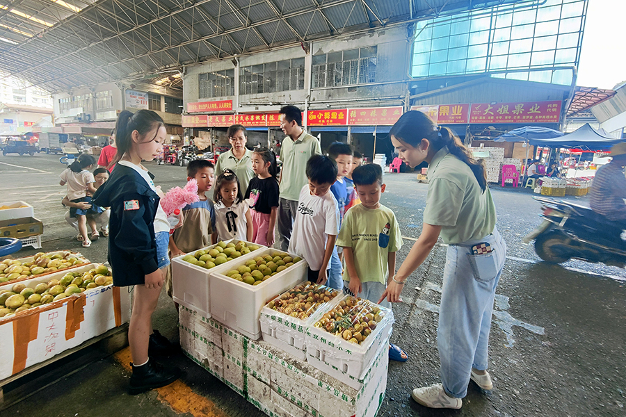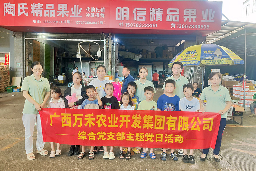 主題黨日活動中,綜合支部組織黨員與孩子們走進萬禾集團百香果苗培育中心,學(xué)習百香果苗種植培育知識,從土壤選擇到種苗養(yǎng)護,從生長環(huán)境要求到開花結(jié)果,孩子們?nèi)嫔钊氲亓私獍傧愎L的習性。隨后,大家來到五里店果蔬批發(fā)市場,綜合支部書記通過給孩子們介紹擺放在攤位上各式水果及其蘊含的營養(yǎng)價值,為孩子們傳授水果常識,全方位培養(yǎng)孩子們的綜合素質(zhì)能力。